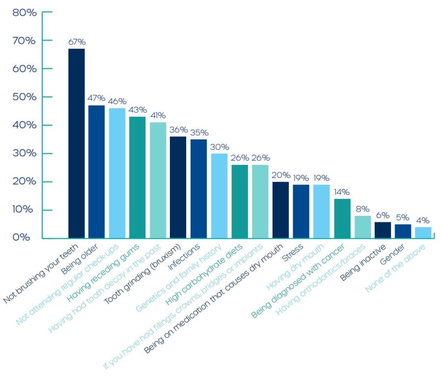 Improving patient awareness of caries Dental caries is extremely common. Just under one in three (31%) British adults have obvious tooth decay in either the roots or crowns of their teeth. 1 Despite this, awareness of dental caries remains low in the population. 2 New research we commissioned alongside Colgate gives us an insight into the population’s knowledge of caries. The key findings are: The UK’s awareness around the factors that increase a person’s risk of dental caries is poor. The below table shows which factors patients believe can increase their risk of tooth decay. 2 Download this data (Excel) Knowledge about how to prevent caries is also concerning. The graph below shows what patients believe are the most effective ways to prevent tooth decay. 2 Download this data (Excel) There also seems to be confusion around the role of fluoride. The table below demonstrates what patients believe fluoride helps prevent. Nearly one-in-five (19%) do not associate fluoride with preventing tooth decay. Download this data (Excel) To reduce dental disease, it is important that patients are more informed and educated about tooth decay and the role of fluoride. Dental professionals have a key part to play in the oral education of patients inside and outside of the practice setting. Understanding the causes Dental caries is the effect of a high-in-sugar diet and the absence of an effective oral care routine. However, the underlying factors can be complex. The motives behind an imbalanced diet and poor home oral hygiene could include: Stress and depression. 3 Minimal interest in self-care or lack of daily structure. 4 Poor lifestyle choices. 5 Being on medication for long periods. 4 Limited social interaction. 6 Lack of support from family or friends. 7 Social economic status and/or financial ability to purchase oral health products. 5 While your care and caries treatment plans may remain the same for each root cause, patients may require further support depending on their individual circumstances. Patients in high risk groups, such as the elderly or dry mouth sufferers also need to be aware that they may be at increased risk. 8 This can be pointed out during a remote consultation, if you are unable to see them in person, where you can draw up a treatment plan alongside your patient. Knowing the benefits Poor oral health is a contributing factor for many wider conditions and diseases. These include: Heart disease. 9 Strokes. 9 Dementia. 10 Diabetes. 11 Erectile dysfunction. 12 Problems with pregnancy outcomes. 13 While highlighting these consequences is important, research shows that behaviour change is far more likely when reinforcing positive outcomes, rather than negative ones. 14 Whether you are discussing sugar reduction in a patient’s diet, talking about how influential brushing is, or describing why they are being prescribed high fluoride toothpastes, it is important to focus on the positives. For patients with, or at increased risk, of dental caries, the benefits of good oral health include: Keeping teeth for life. Having teeth that are strong, healthy and that are pain free. No unnecessary surgery or treatment, that could also save them money. Better gum health and fresher breath. Social benefits and greater confidence. A healthier body and better quality of life: Lower risk of heart disease, strokes, cancer, dementia etc. By understanding why your patient is suffering from dental caries you can make a more informed decision about what will help motivate them to make better changes. 14 Education at home While dental visits remain an important part of maintaining a patient’s oral health and controlling their caries, self-care at home is essential. 14 It is important that patients are able to take responsibility and control for their own oral health as a preventive solution to combat oral diseases like caries. To help them achieve this, dental practices will play an essential role. To help patients prevent and manage caries, practices should provide them with information about: An effective oral health routine, including brushing, interdental cleaning, mouthwash and sugar free gum. Diet and sugar. The benefits and differences of oral health products. Preventive solutions like fluoride toothpaste. This advice can be routinely given during remote consultations, face-to-face appointments and caries risk assessments. It can also be delivered digitally by email or social media. Consider sharing infographics and videos, like the ones in our downloads area. They are a highly effective way to pass on accurate information and maintain your relationship with patients outside of the practice setting. Sources The Health and Social Care Information Centre (2011) ‘Adult Dental Health Survey 2009’ first published 24th March 2011. Oral Health Foundation and Colgate (2020) 'Dental Caries Research', UK, Broadcast Revolution, Sample 2,008. Mohammadi TM, Sabouri A, Sabouri S, Najafipour H. Anxiety, depression, and oral health: A population-based study in Southeast of Iran. Dent Res J (Isfahan). 2019;16(3):139-144. Citation: Tredget J, Sze TW: (2019) Raising awareness of oral health care in patients with schizophrenia. Nursing Times [online]; 115: 12, 21-25. Sakki TK, Knuuttila ML, Vimpari SS, Kivelä SL. Lifestyle, dental caries and number of teeth. Community Dent Oral Epidemiol. 1994 Oct;22(5 Pt 1):298-302. doi: 10.1111/j.1600-0528.1994.tb02055.x. PMID: 7813180. Smith JM, Sheiham A. (1979) ‘How dental conditions handicap the elderly’. Community Dent Oral Epidemiol. 1979;7(6):305–310 [PubMed] [Google Scholar] Fontanini H, Marshman Z, Vettore M. Social support and social network as intermediary social determinants of dental caries in adolescents. Community Dent Oral Epidemiol. 2015 Apr;43(2):172-82. doi: 10.1111/cdoe.12139. Epub 2014 Nov 21. PMID: 25413492. National Institute of Dental and Craniofacial Research. Dry Mouth (NIH Publication No. 14-3174). National Institutes of Health. Accessed 